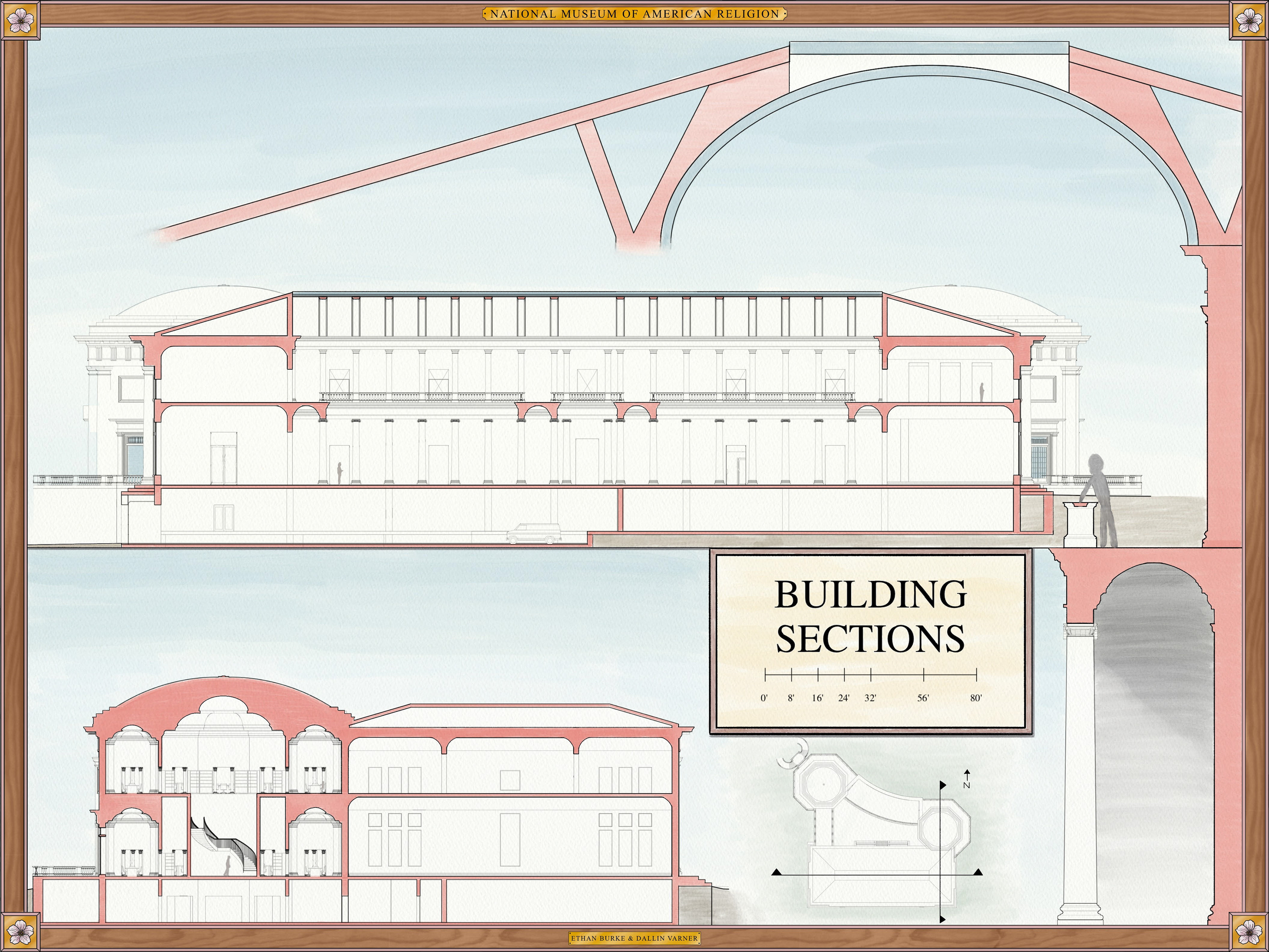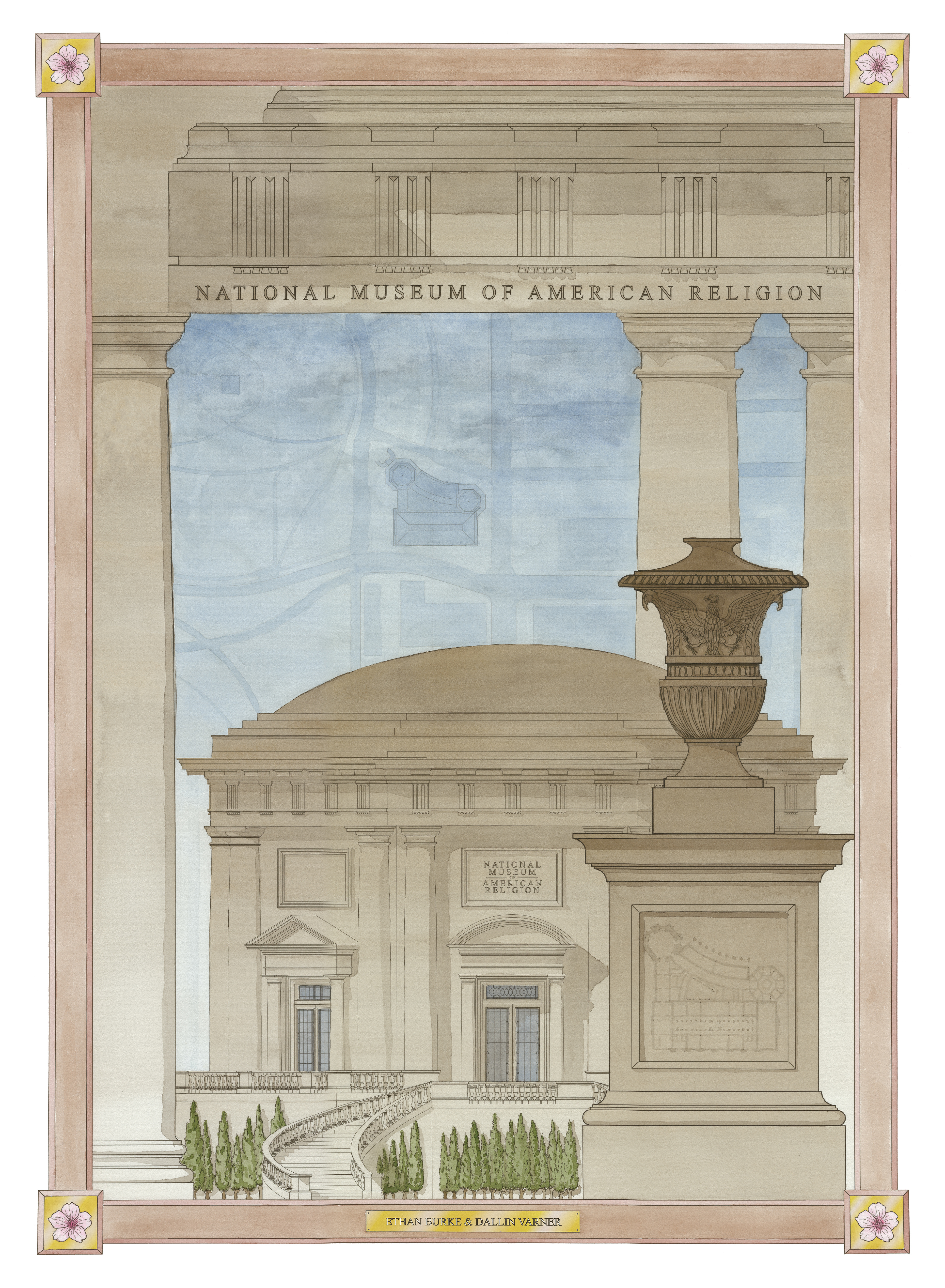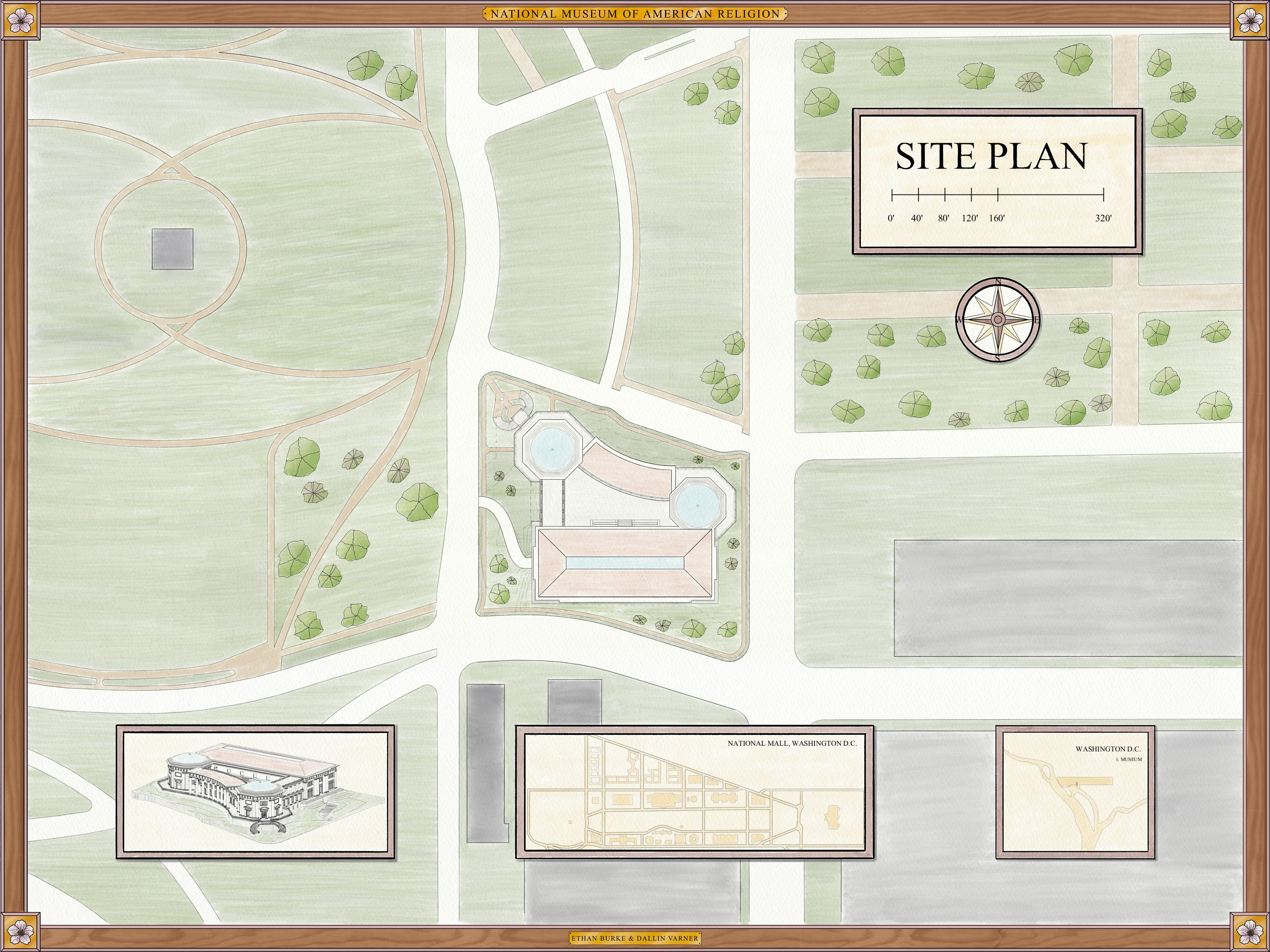The National Museum of American Religion is a proposed civic museum on the National Mall, positioned across from the Washington Monument. The project explores how architecture can present the history of religious freedom in America without favoring any single tradition. The design avoids overt religious typologies, instead proposing a neutral civic form organized around a grand interior hall and a chronological sequence of exhibition spaces.